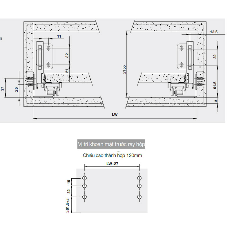 Loại: Ray hộp Hafele với thanh hộp mỏng
