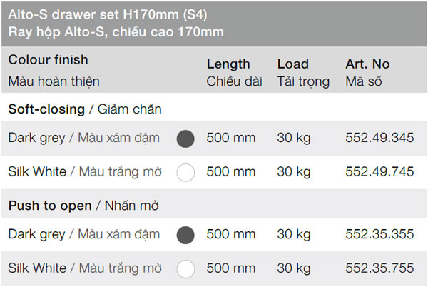 Tên: Ray hộp Hafele Alto-s H170 S4
