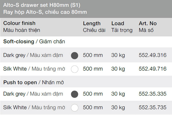 Tên: Ray hộp Hafele Alto-s H80 S1