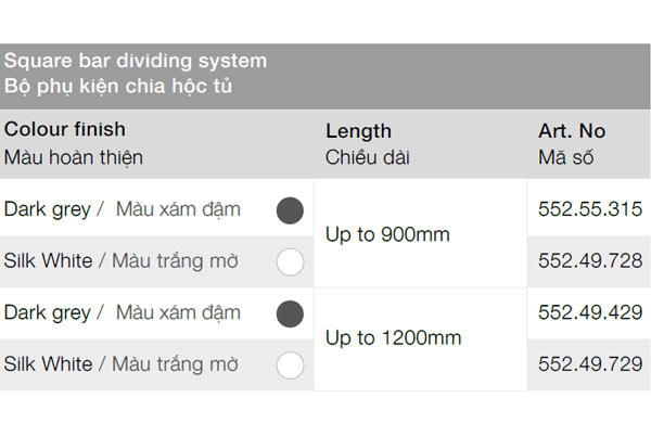 Tên: bộ phụ kiện chia hộc tủ Alto-S