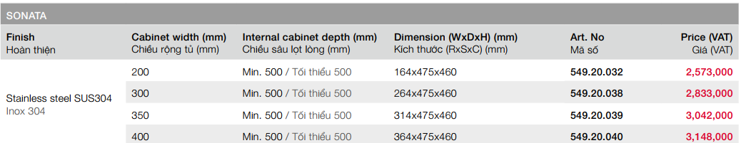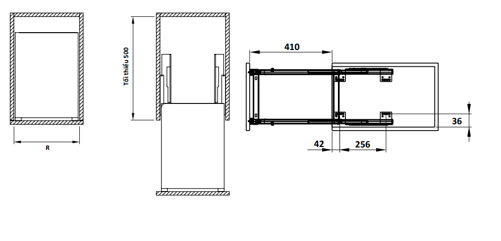 + Khu vực lắp đặt: Tủ bếp dưới