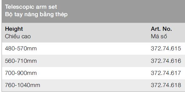 + Dùng kèm với bộ cơ cấu điện tay nâng Blum aventos HF