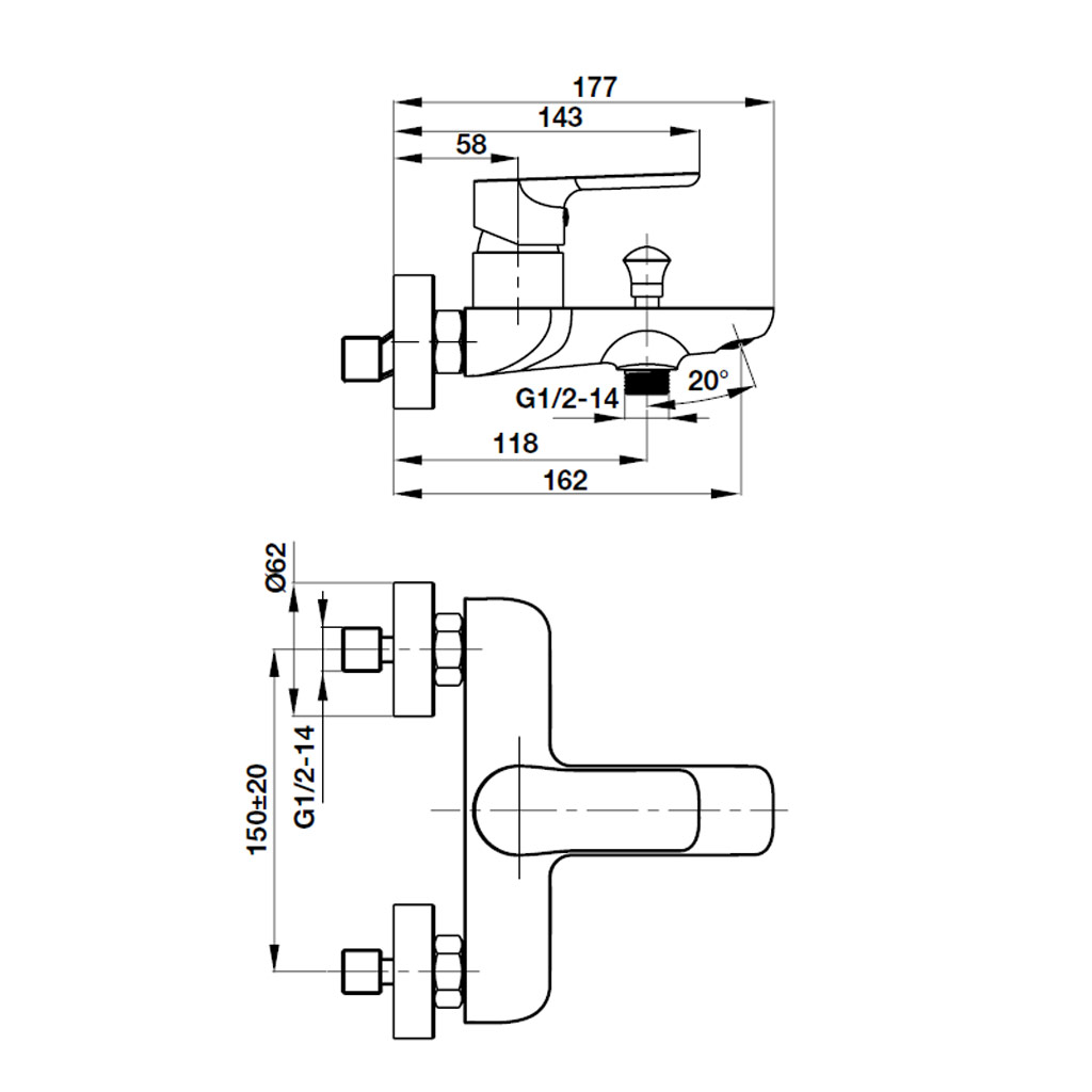 Lưu lượng nước ở 3 bar - đường nước1: 20 lít/phút
