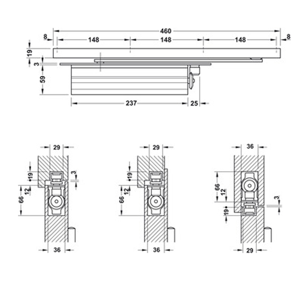 + Cơ cấu đóng cửa âm Hafele 931.84.269 thuộc dòng: Startec