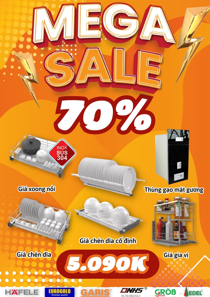 Bếp từ, Máy rửa chén, Hút mùi, Lò nướng, Lò vi sóng, Chậu, Vòi