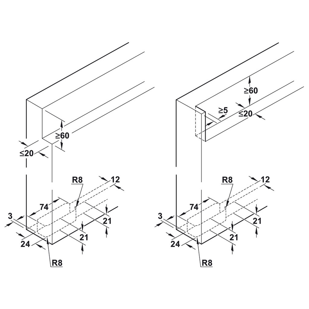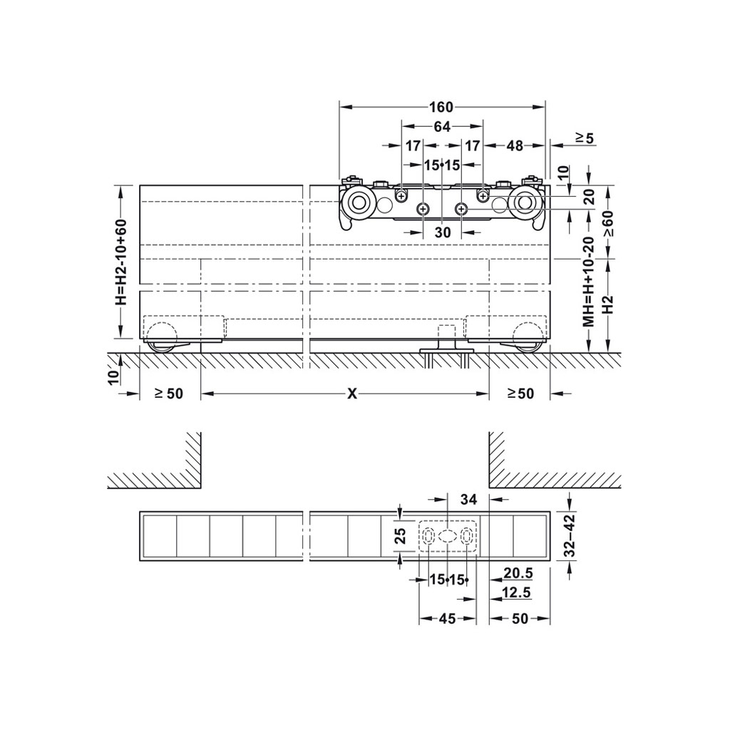 + Phụ kiện cửa trượt Hafele sildo design 80-M dành cho cửa có trọng lượng tối đa: 800 kg