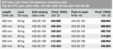 Tên: Ray âm Hafele EPC PLUS giảm chấn mở toàn phần