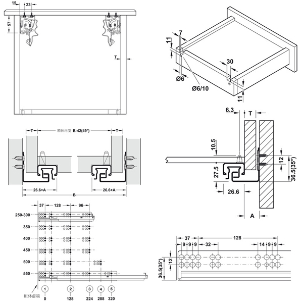 + Lắp đặt: Dùng vít bắt dọc hai bên sườn, hệ thông lỗ chờ theo tiêu chuẩn 32mm
