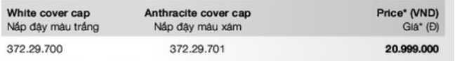 - Lớp phủ hoàn thiện/màu: phụ kiện lắp đặt mạ niken, nắp chụp màu xám/đem anthracite.