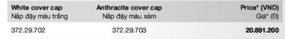 - Lớp phủ hoàn thiện/màu: phụ kiện lắp đặt mạ niken, nắp chụp màu xám/đem anthracite.