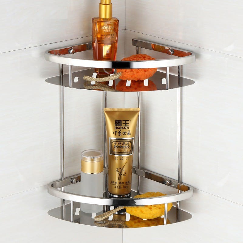 Kệ góc đựng gia vị trong nhà bếp, kệ góc đựng sữa tắm dầu gội trong nhà tắm 2 tầng inox 304