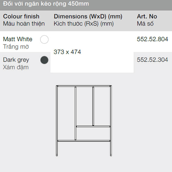 Tên: Khay chia ngăn kéo Hafele 450mm
