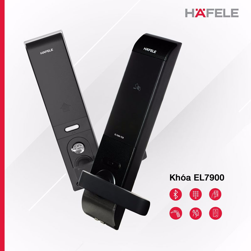 + Khóa điện tử Hafele DL7900 thân nhỏ với 4 cách mở: Bluetooth, thẻ từ, mã số và chìa cơ