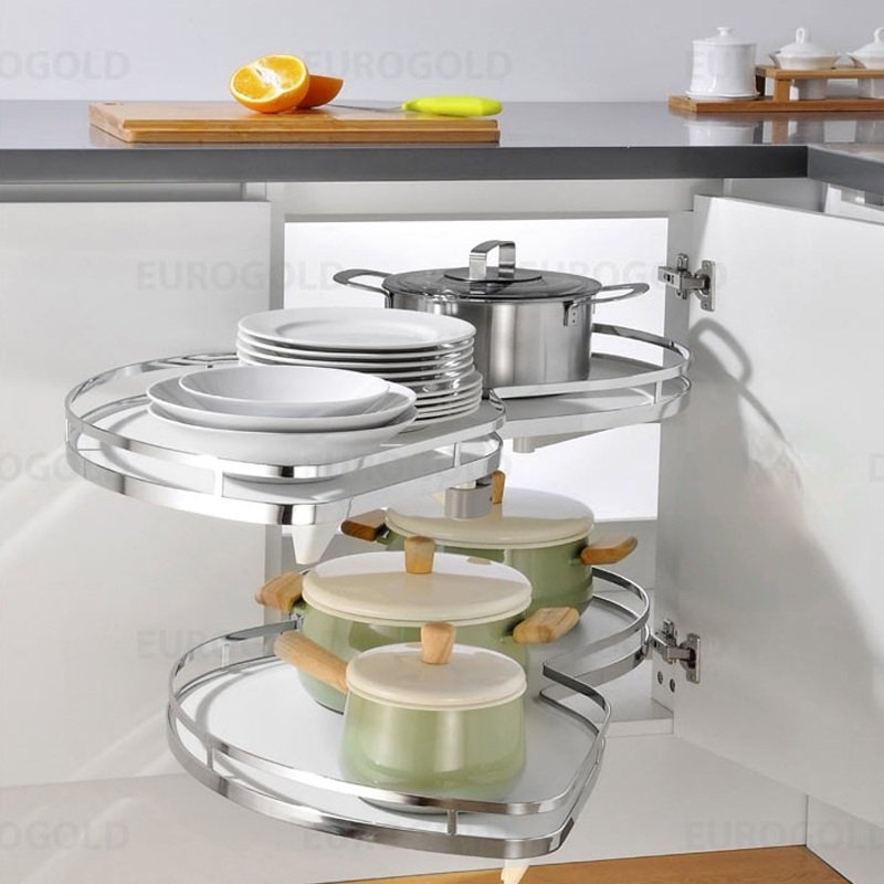 Với nguyên lý hoạt động thông minh dạng xoay 180 độ, nhà sản xuất Eurogold tính toán kỹ lưỡng các góc xoay giúp tận dụng góc khuất, khi kéo mâm xoay ra có thể nhìn tổng quát toàn bộ đồ vật trong mâm, dễ dàng sắp xếp và lấy đồ vật.