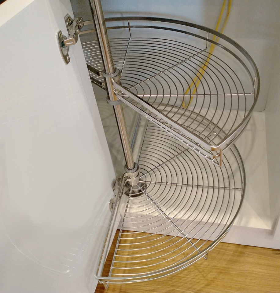 Mâm xoay Eurogold EPL180A là loại phụ kiện dành cho tủ bếp góc, giúp các gia đình tận dụng góc chết hiệu quả nhất, tạo sự ngăn nắp, gọn gàng. Mâm xoay là sản phẩm vô cùng phù hợp và cần thiết với những gia đình sống tại chung cư hoặc những nơi có không gian bếp nhỏ. Với thiết kế một trục cố định ở giữa và 2 mâm inox nan xoay 180 độ giúp việc cất giữ đồ như cốc chén, bát đĩa, chai lọ… trở nên đơn giản hơn. Vừa gọn gàng và ngăn nắp lại vừa tiết kiệm tối đa được không gian bếp.
