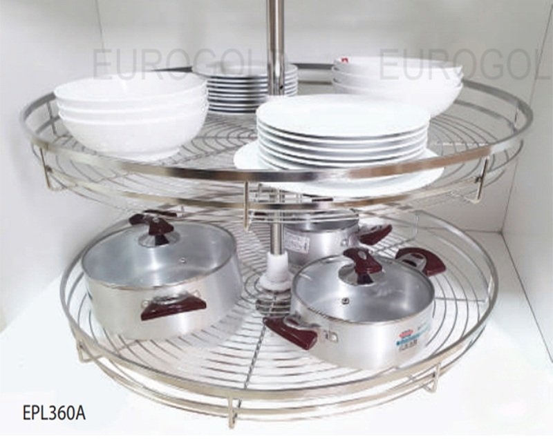 Mâm xoay Eurogold EPL360A được làm từ chất liệu INOX SUS304 bền bỉ, an toàn cho sức khỏe. Hai mâm xoay chuyển động thông minh, linh hoạt giúp việc sắp xếp đồ đạc trở nên dễ dàng hơn bao giờ. Mâm xoay mở toàn phần Eurogold EPL360A là giải pháp tuyệt vời cho góc chết nhà bạn, giúp bạn tận dụng được triệt để không gian nhà mình.