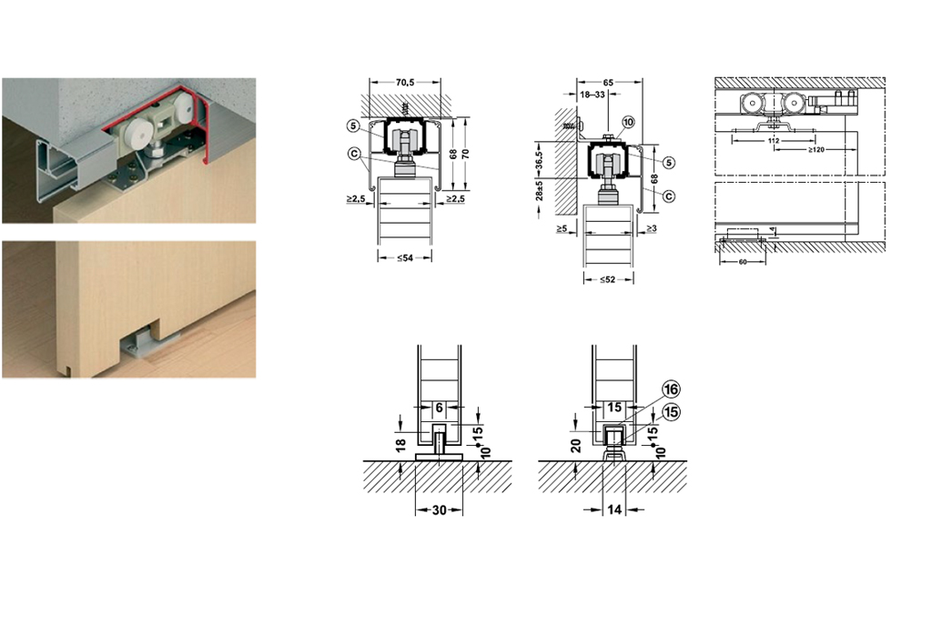 + Phụ kiện cửa trượt Hafele 160P 940.82.256 dàng cho cửa có trọng lượng tối đa: 160 kg