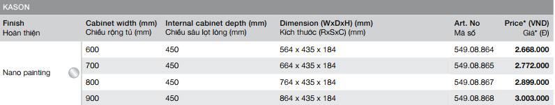 + Loại: gắn mặt cánh cho tủ bếp dưới