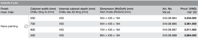 + Loại: gắn mặt cánh cho tủ bếp dưới