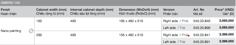 + Loại: gắn mặt cánh cho tủ bếp dưới