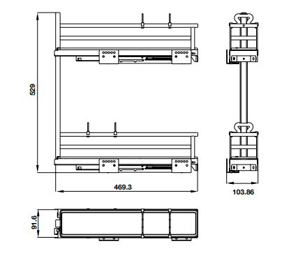 + Ray trượt giảm chấn lắp gài với rổ lắp bên