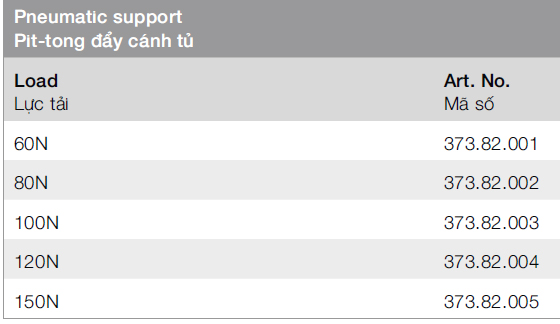+ Lực đẩy của pittong Hafele: 60-80-10-120-150N