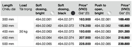 >> Loại ray bi giảm chấn Hafele: Mở toàn phần