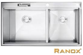 Chậu 2 lệch hố cao cấp có tích hợp khay đựng dao, bình xịt nước rửa chén RANOX