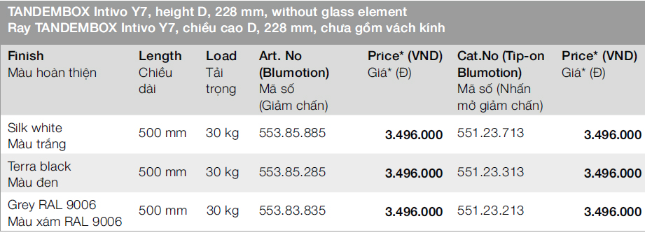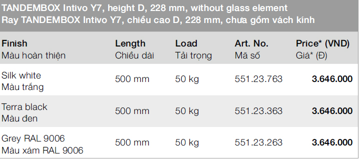 + Chiều dài ray blum tandembox Y7: 500mm