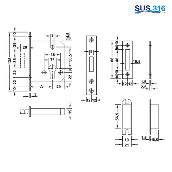 + Thân khóa chốt chết hafele 911.22.386 inox 316 thuộc dòng: Costal