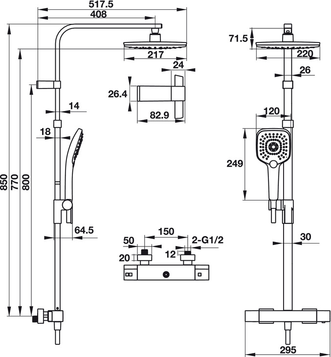 Lưu lượng nước của sen đầu ở 3 bar: 12.8 lít/phút