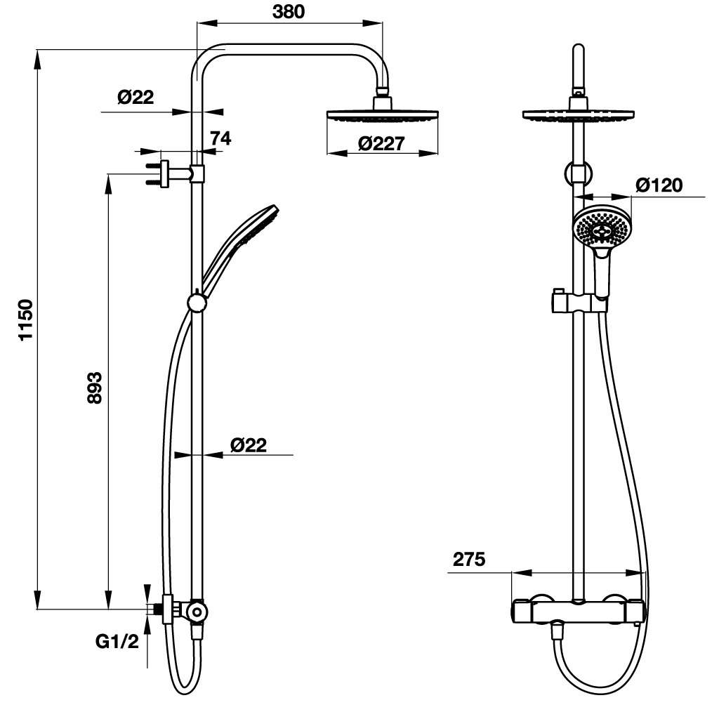 Thanh sen kết hợp có bộ trộn điều nhiệt Intensity 227R 495.60.101