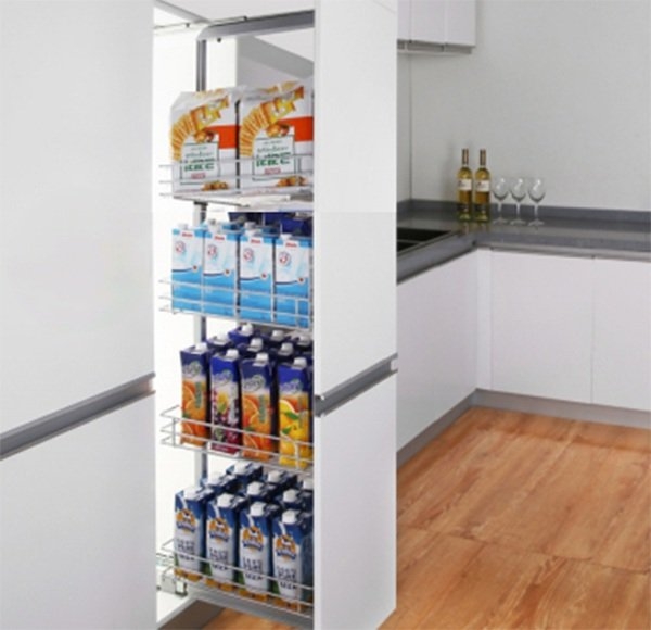 Thay vì xếp đồ đạc một cách không khoa học tạo nên sự bề bộn cho bếp thì tủ kho sẽ đem tới cho bạn sức chứa vô cùng lớn giúp căn bếp luôn sạch sẽ, gọn gàng. Với thiết kế 6 tầng, 6 rổ đựng. bạn có thể tha hồ cất gọn tất cả các vật dùng, đồ ăn.. vào khoang tủ phía sau cánh cửa tủ.