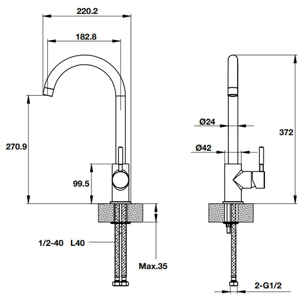 - Vòi dạng vòi rửa bát 1 lỗi gắn bàn đá hoặc chậu đá