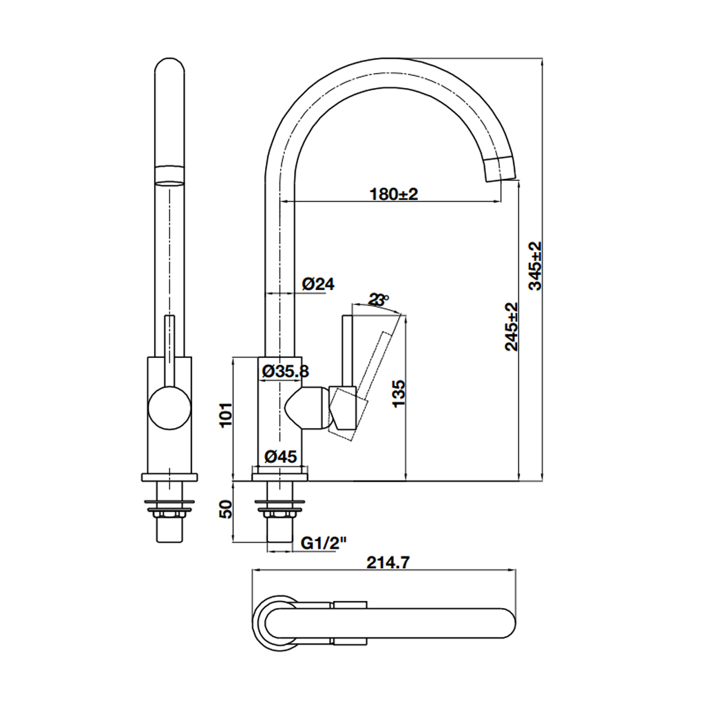 + Vòi rửa bát Hafele HT21-CC1F245C 577.55.270 thiết kế kiểu chữ U
