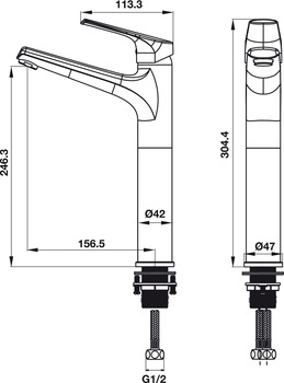 • Khoảng cách từ đầu vòi đến chậu / mặt bàn: 246.3mm