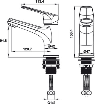 • Khoảng cách từ đầu vòi đến chậu / mặt bàn: 94.8mm